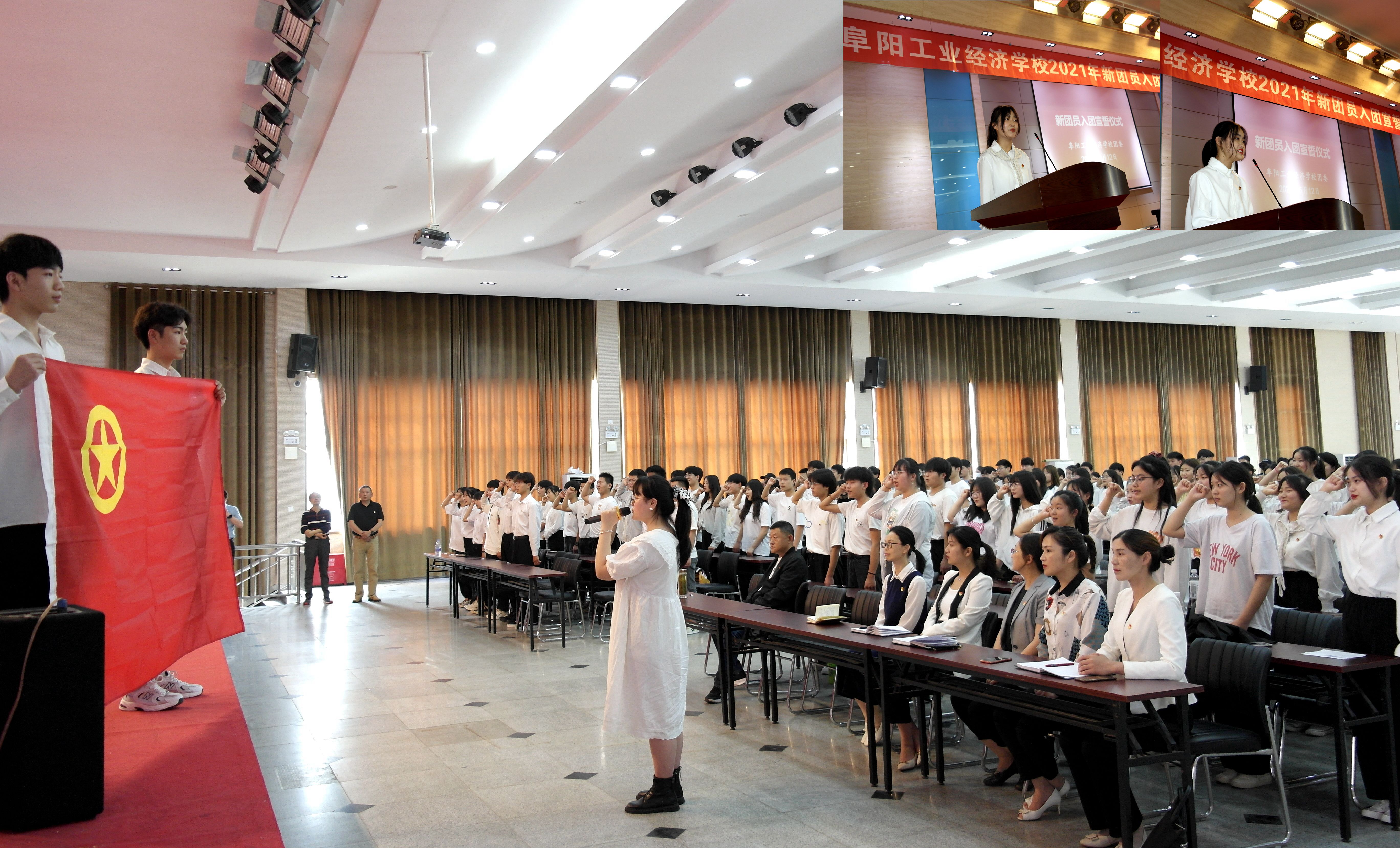 5月12日,“传承红色基因 勇担时代使命”2021年阜阳工业经济学校新团员入团宣誓暨党史教育宣讲大会在多功能厅举行。共青团阜阳市委副书记许灿,阜阳工业经济学校副校长范峰、相关科室负责人、学生党支部党员、校团委委员及教师和团员代表三百余人参加了活动。