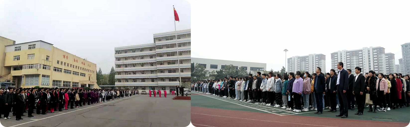 4月12日上午,在阜阳工业经济学校南校区和东校区国旗台前操场,学校国旗护卫队护旗手迎着四月的朝阳,以挺拔的身姿,整齐的步伐,坚毅的眼神,护送国旗上升旗台。伴随着雄壮的国歌,鲜艳的五星红旗冉冉升起。全校师生面向国旗立正肃立,向国旗行注目礼,拉开了两校区“青少年学党史”活动的序幕。