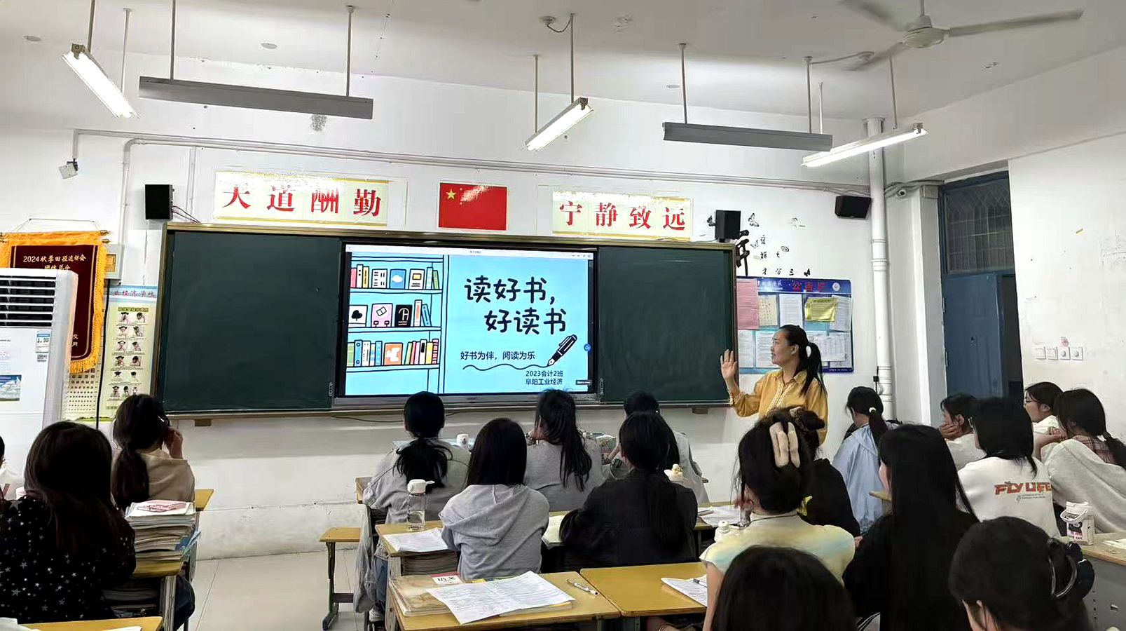 班会现场,同学们积极分享了自己的阅读经历和感悟。有的同学讲述了通过阅读经典文学作品,感受到语言的魅力和人性的光辉;有的同学分享了在阅读专业书籍时,如何解决学习中的难题,拓宽知识面;还有的同学推荐了自己喜欢的书籍,并阐述了推荐的理由。现场气氛热烈,同学们的发言充满了对阅读的热爱和对知识的渴望。