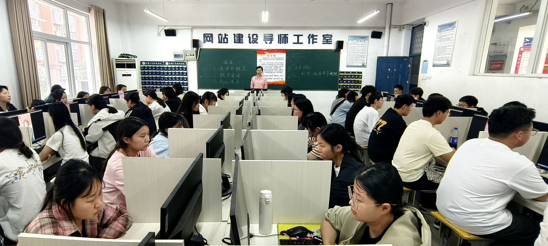 5月8日下午第5节课,贾瑞雪老师在2024级平面设计1班开展《通道工具》公开课示范教学。贾老师以制作母亲节剪影创意海报为任务目标,将感恩教育融入图形图像处理教学。在实践环节,引导学生在技术操作中注入情感表达,深化“技术服务于人文关怀”的专业认知,培养了学生的创新思维和审美能力。