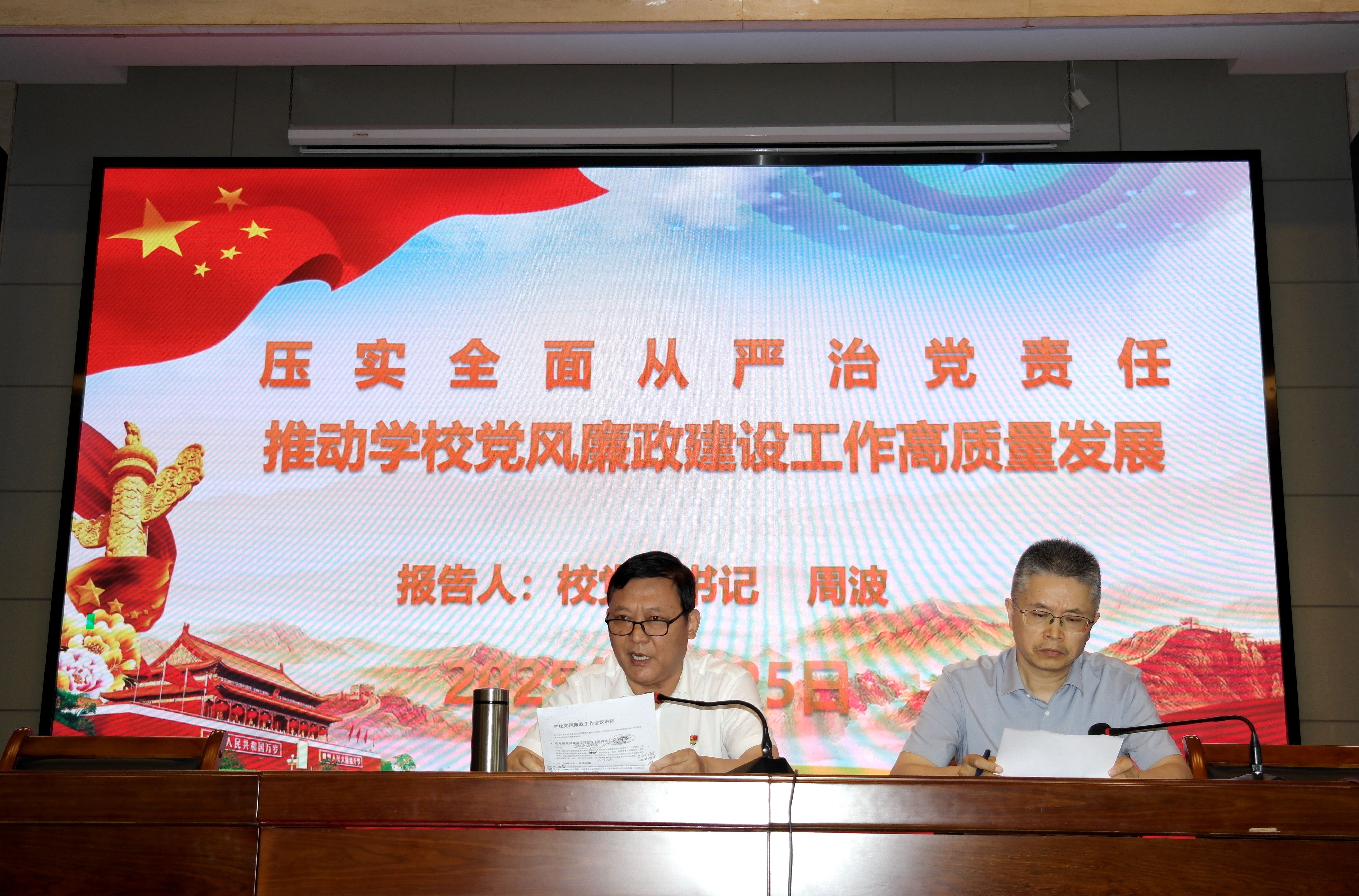 党委书记周波以《压实全面从严治党责任 推动学校党风廉政建设工作高质量发展》作总结讲话,强调中职学校作为技术技能人才培养主阵地,要将“严”字贯穿教育教学全流程,聚焦重点领域、关键环节强化监督,坚持廉政建设与业务工作同谋划、同推进、同考核,为学校高质量发展保驾护航。