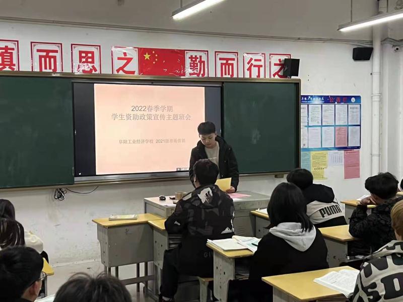 阜阳工业经济学校各班级本周利用晚自习时间开展了资助政策宣传主题班会活动。