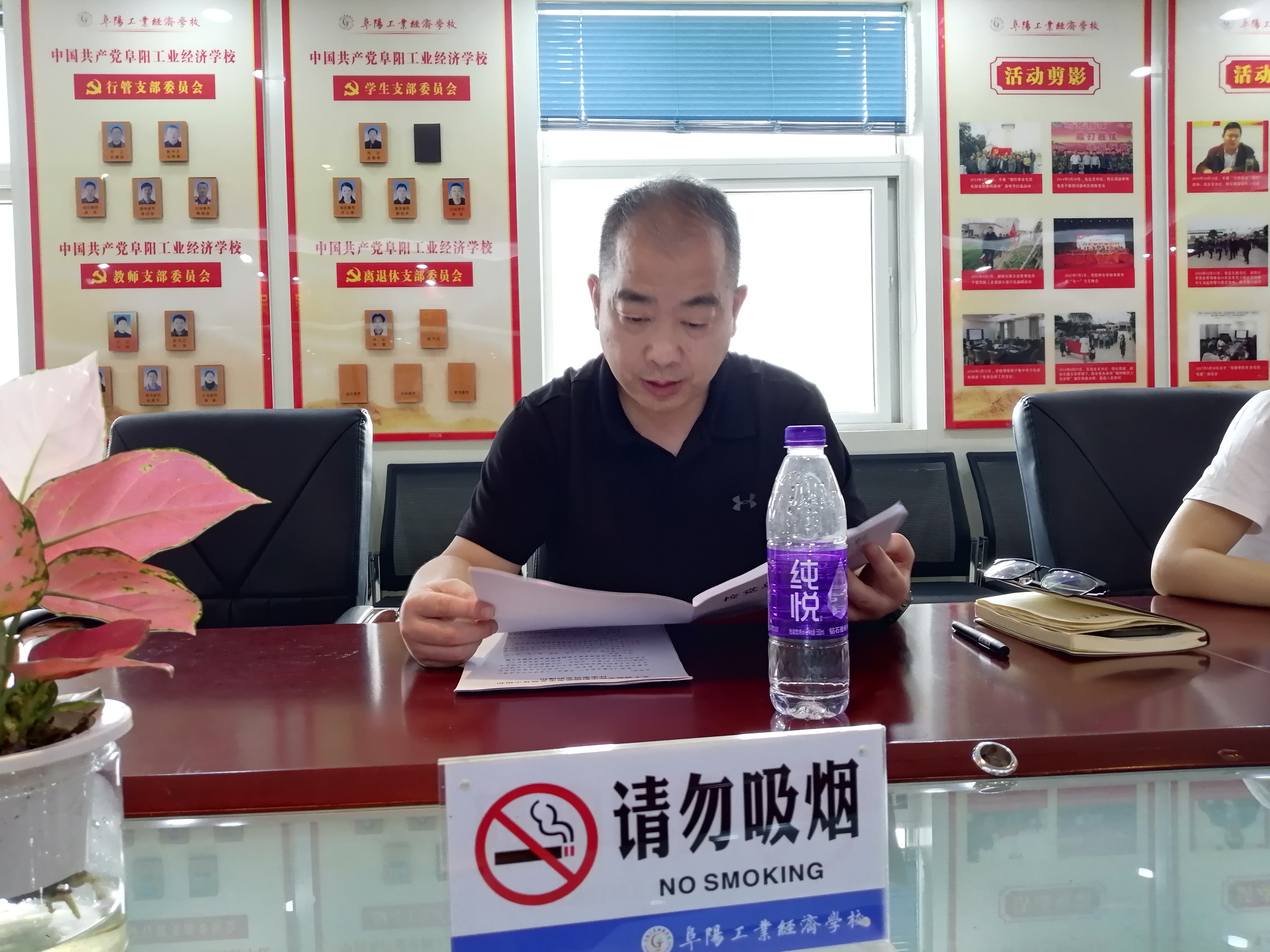 阜阳工业经济学校资助办于新学期9月9日下午在四楼会议室召开科室工作会议,会议由姜亮主任主持。