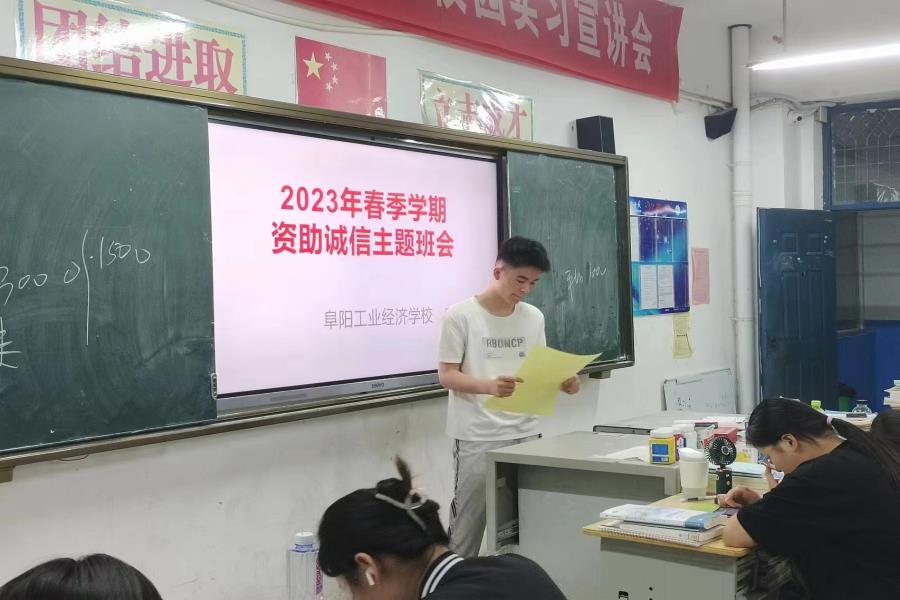 阜阳工业经济学校资助诚信教育系列活动之---2023年春季学期资助诚信教育主题班会