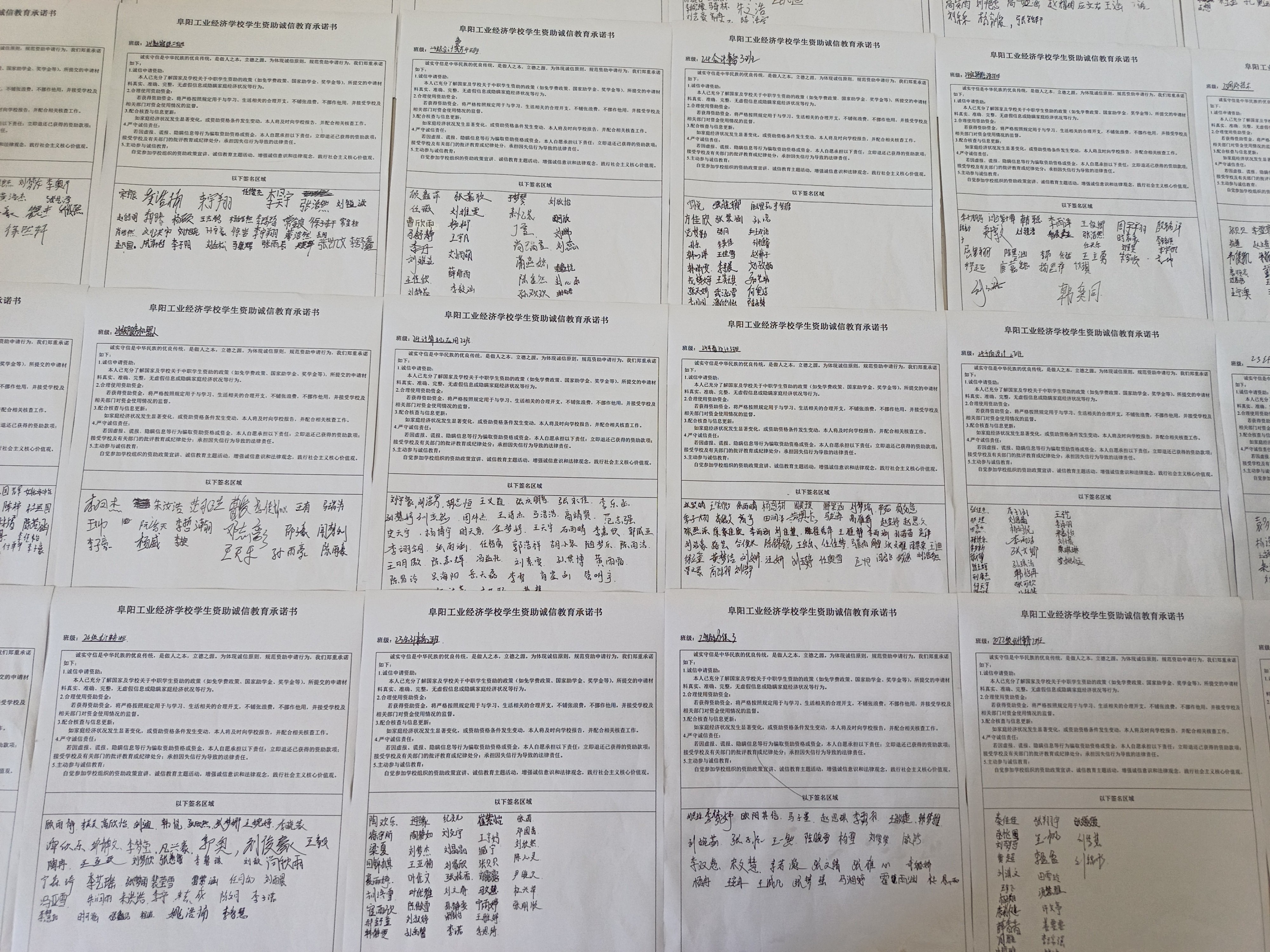 阜阳工业经济学校2025春季学期资助诚信教育系列活动之---学生资助诚信教育承诺书签名活动